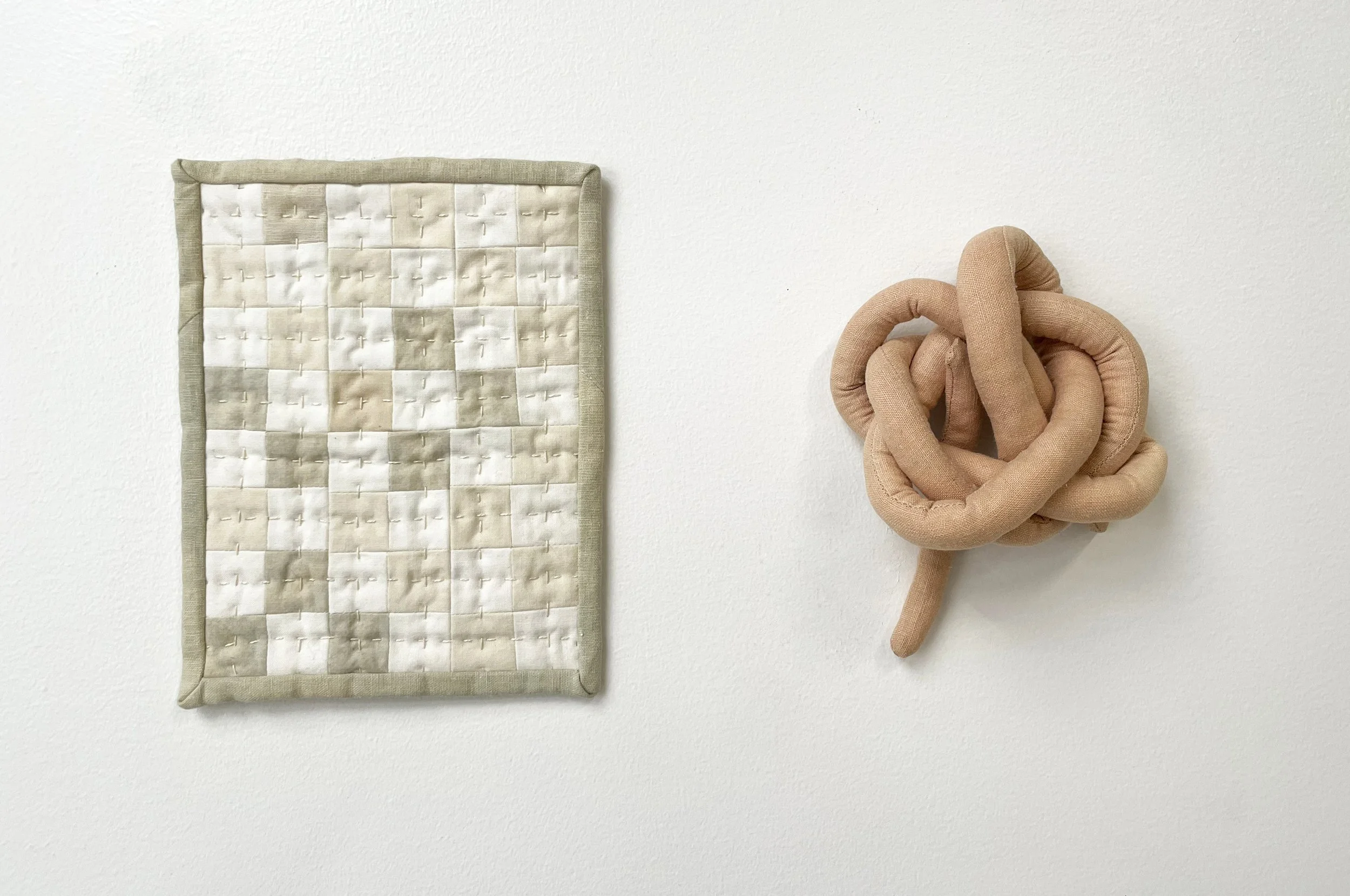 oak, machine-pieced, hand-quilted with appliqué, soft sculpture, naturally dyed with rosemary, carrot, avocado, indigo, black walnut